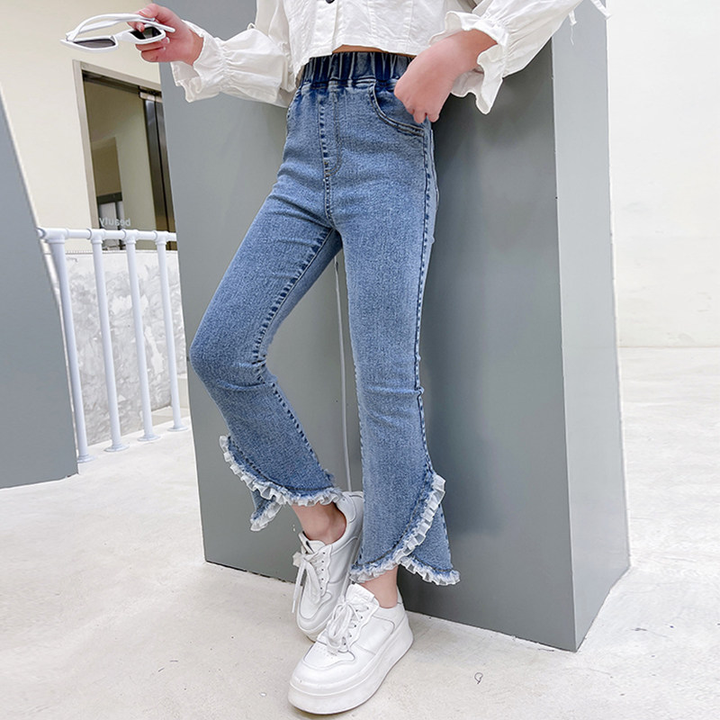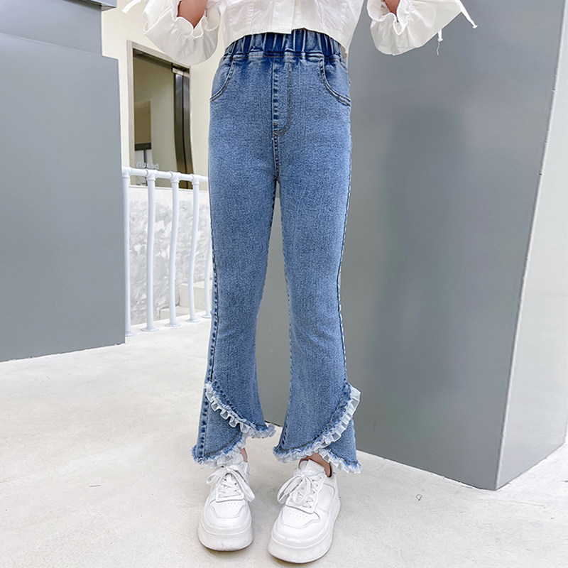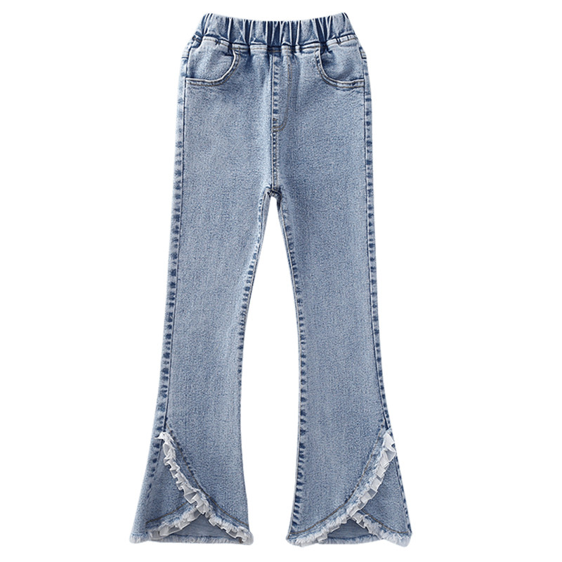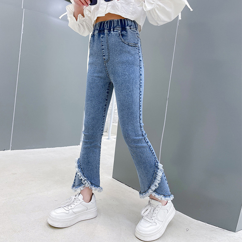 Girl Cowboy Horn Pants Spring New CUHK Child S-up Pants Spring Autumn Clothing Children Microlao Casual Pants