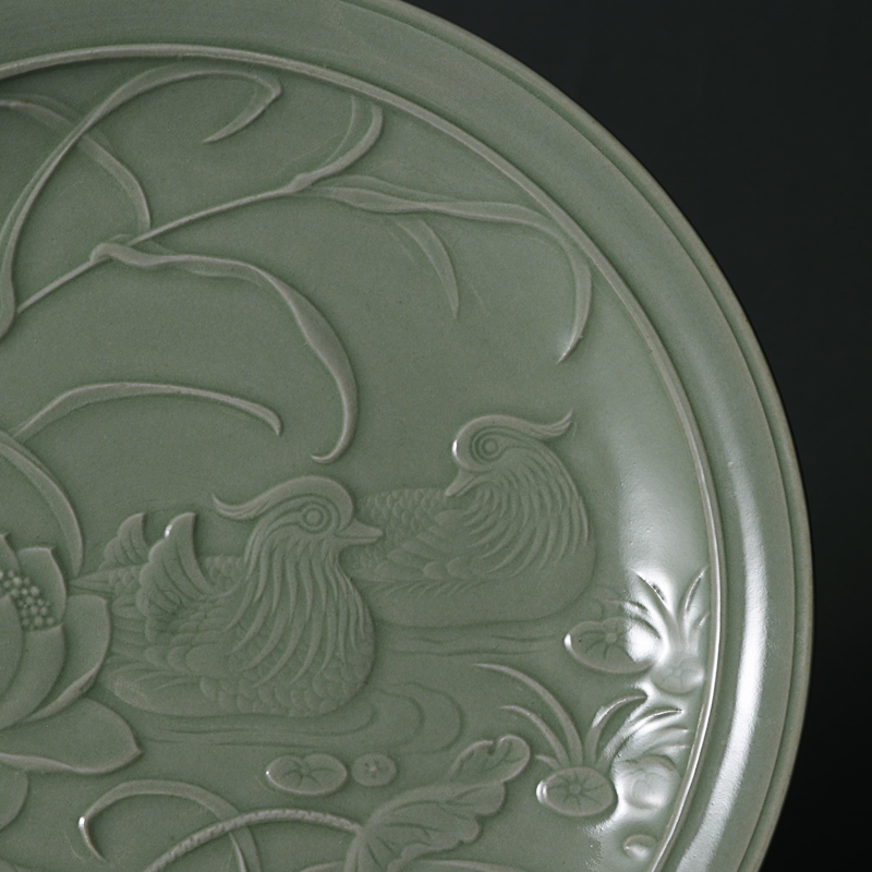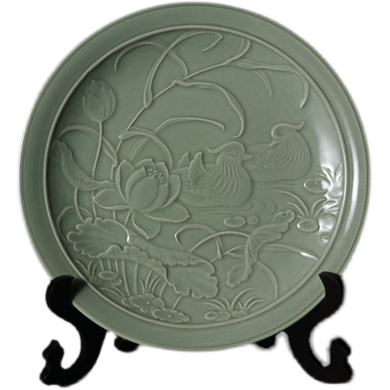 Upper Forest Lake Yue Kiln Green Porcelain Small Mandarin Dish Home Wedding Celebration Gift Ceramic Pendulum Decorated With Bracket 23cm Secret Porcelain