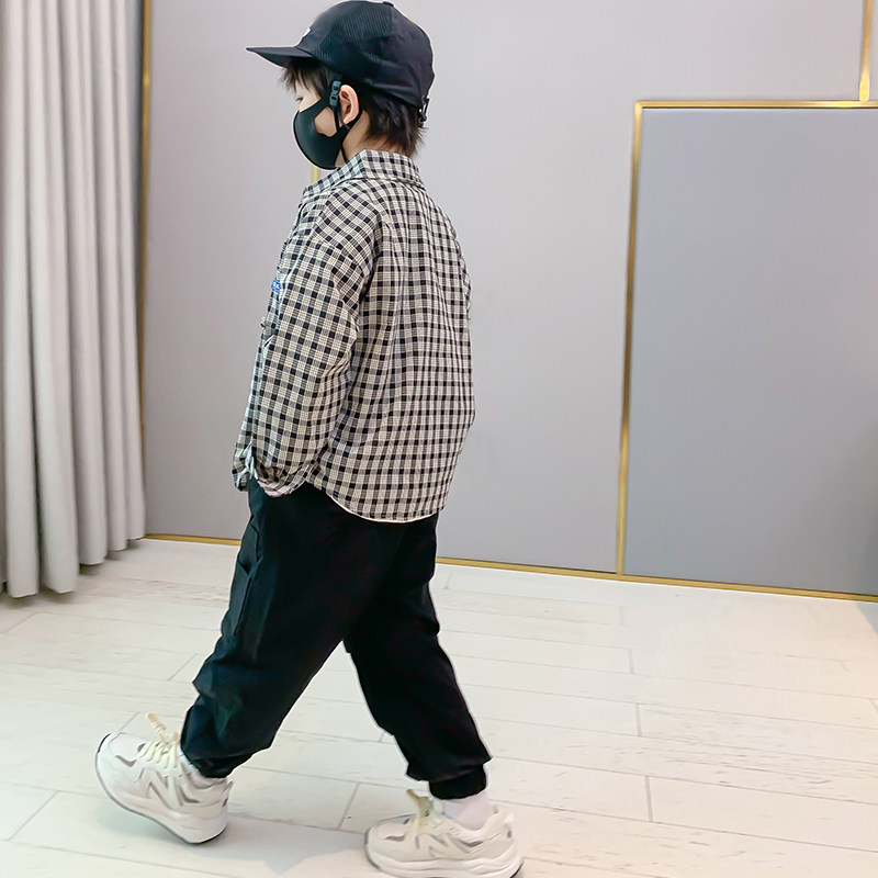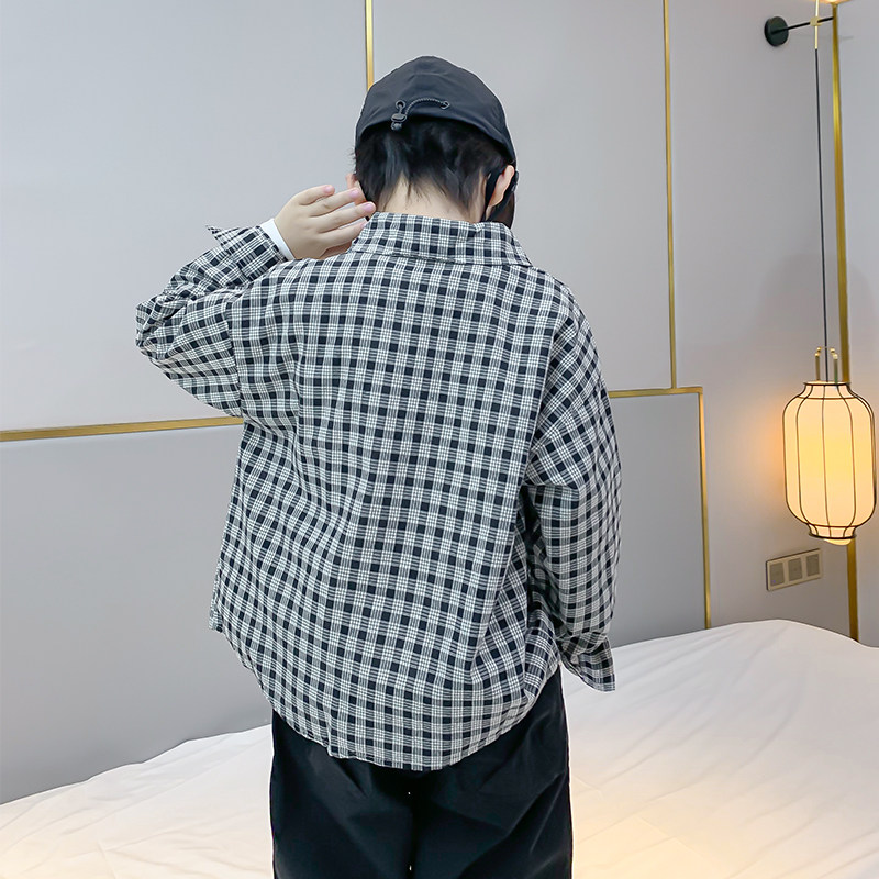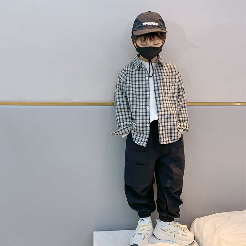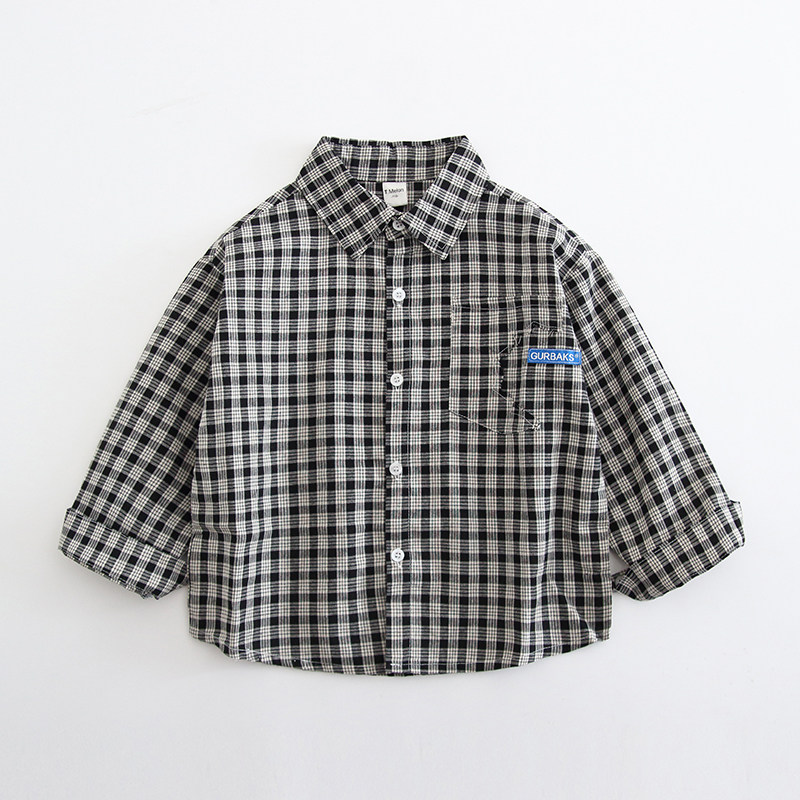 Children's plaid shirt boy shirt black and white lattice 2022 spring autumn new spring clothing boys' baby pure cotton foreign pie