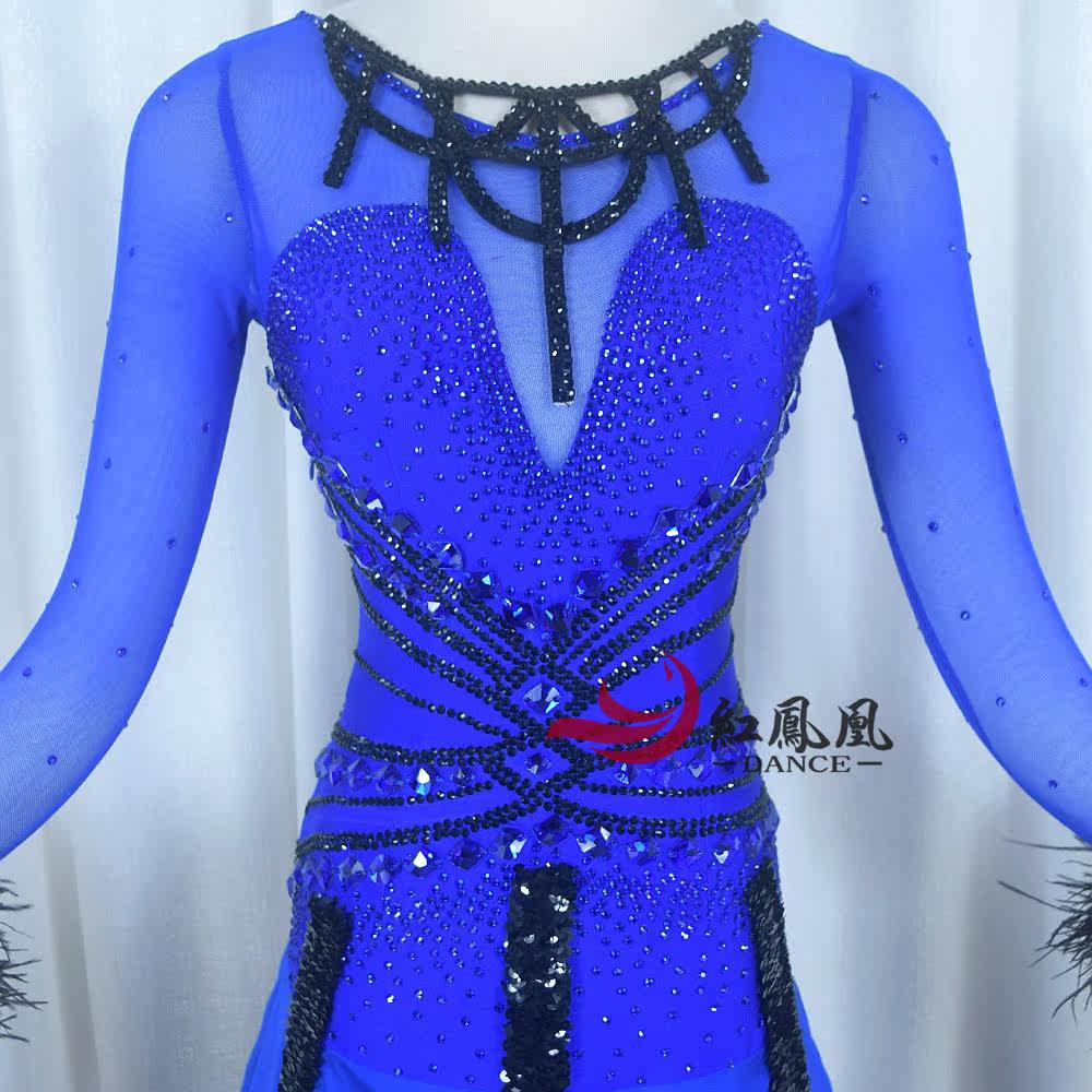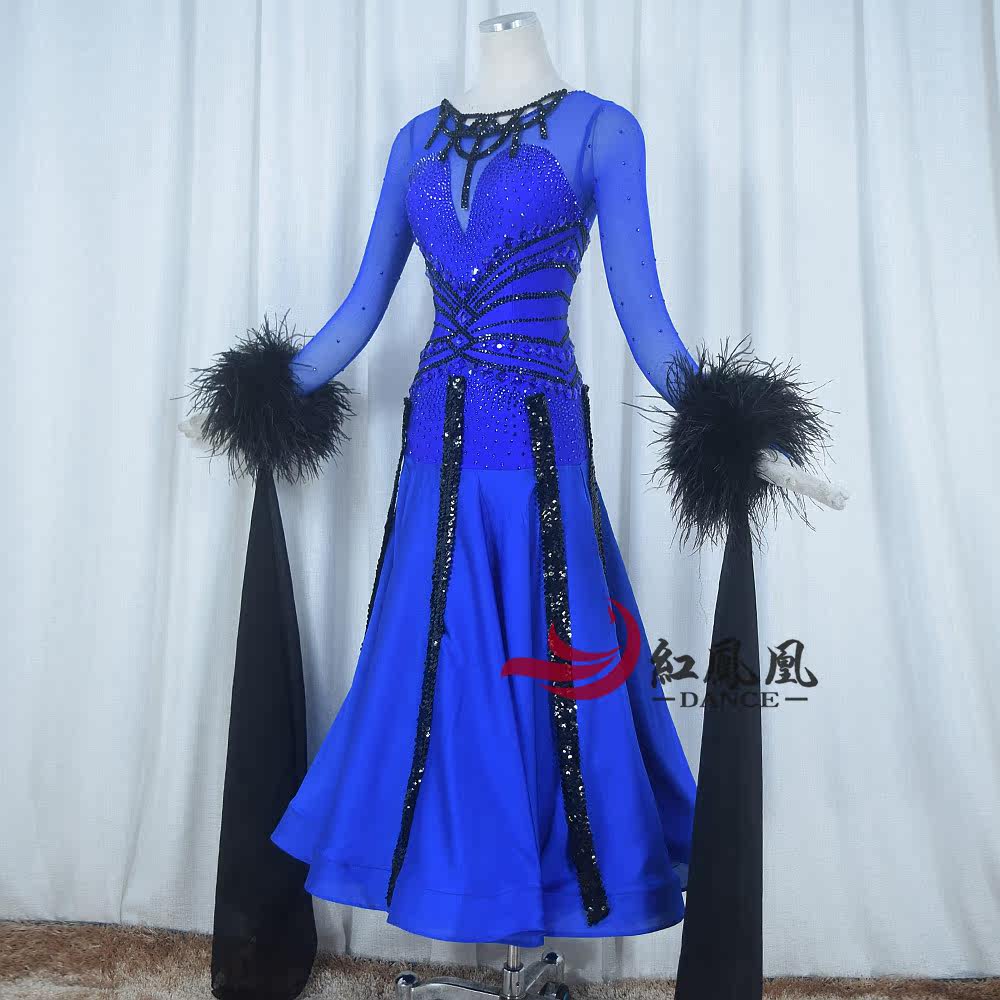Red Phoenix Treasure Blue Feather Section Morden Dance Competition Dress Waltz Fox Step Tango Performance Uniform 1009