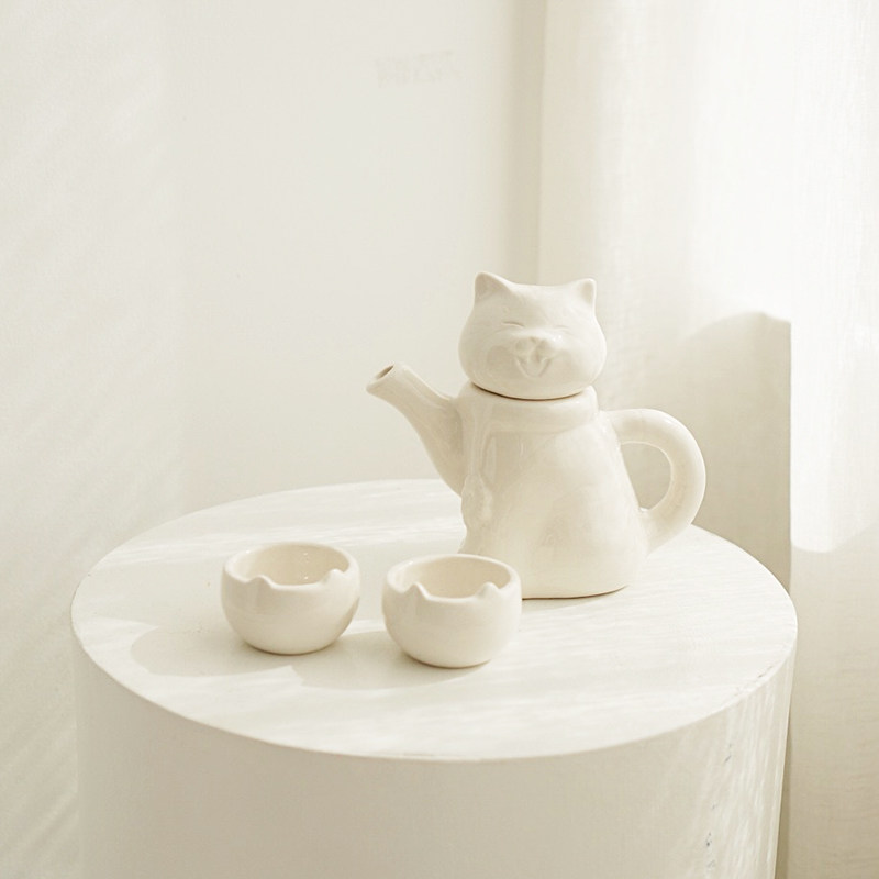 mewji Miaoji original yellow orange white cat spot special clearance cute ceramic teapot sake pot gift box