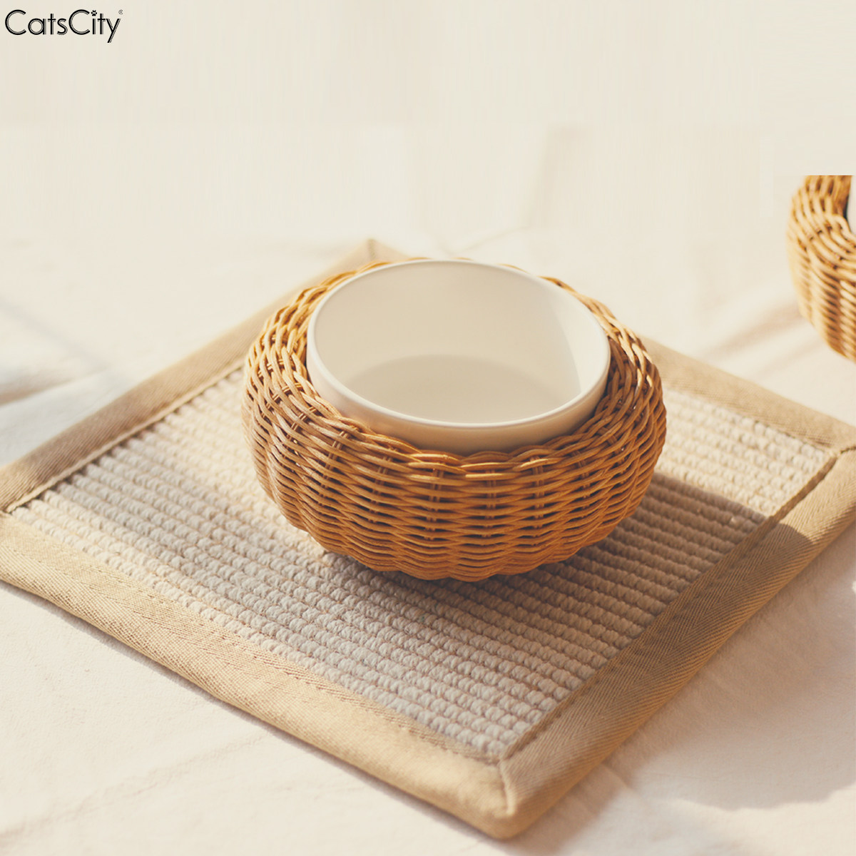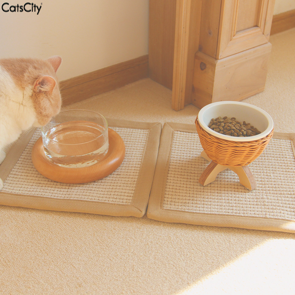 CatsCity pet kitty dog dining cushion non-slip wool sisal square tea cushion bowl mat human cat sharing easy to clean