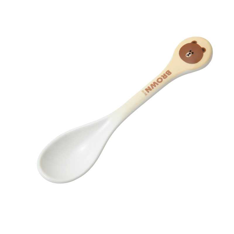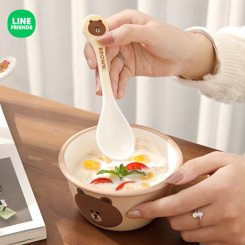 LINE Brown Bear Cartoon Creative Personality Ceramic Spoon Home Drink Soup Children Round Handle Small Spoon Cute Cutlery