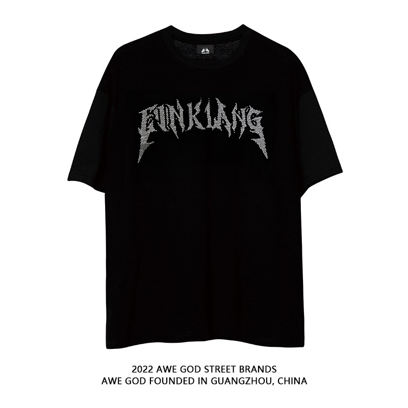 AWE GOD national tide American hot diamond letter short-sleeved top men's and women's street loose couple casual bottoming T-shirt