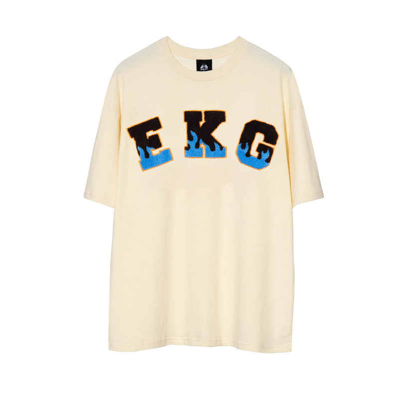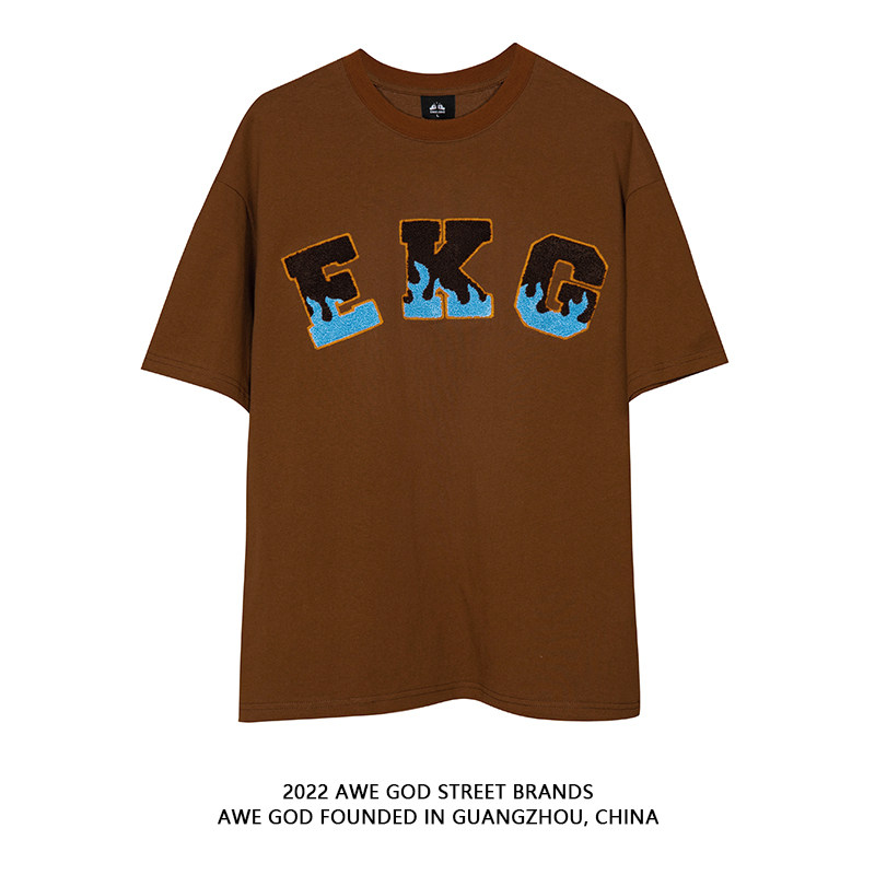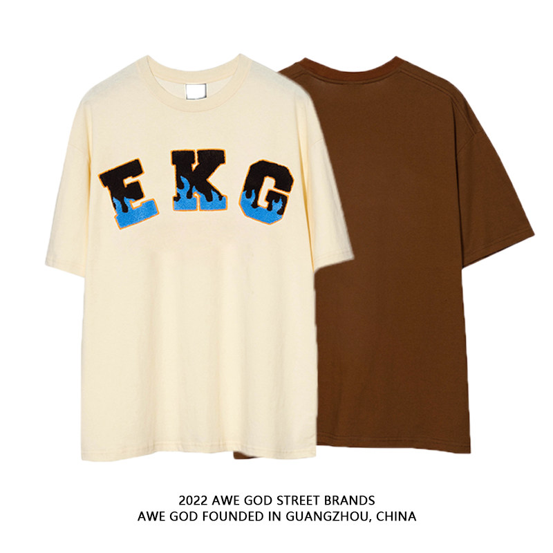 AWE GOD American original tide brand letter flame flocking short sleeve 2022 summer new loose T-shirt tide
