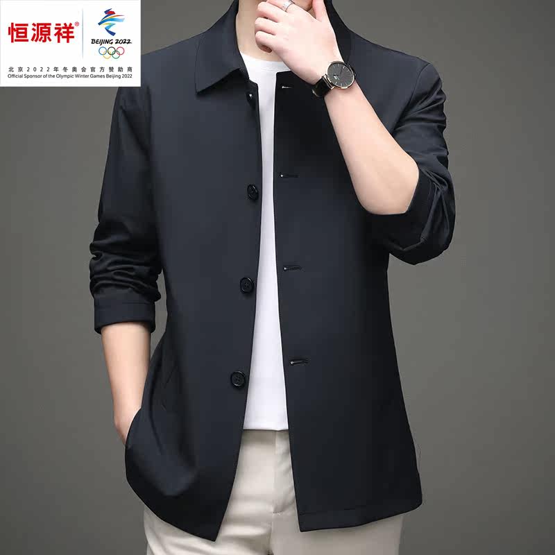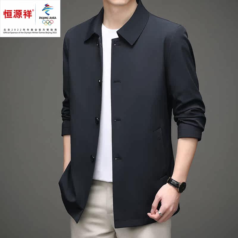 Men's Windbreaker Mid-Length Lapel Business Casual Middle-aged Thin Jacket Hengyuanxiang Group Color Sheep Dad Jacket