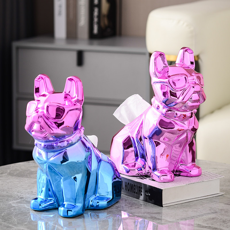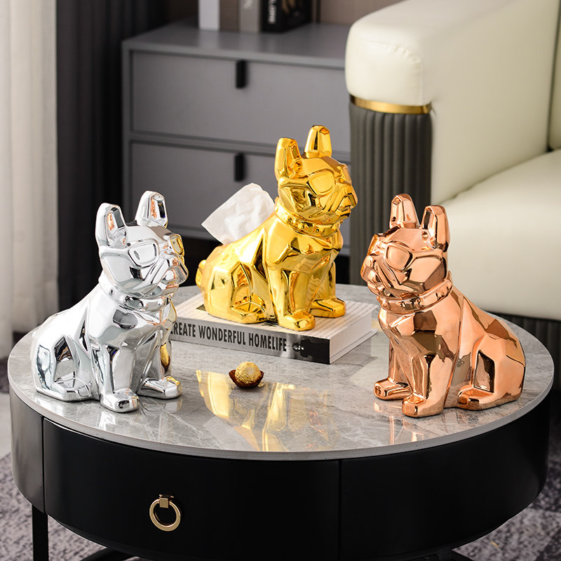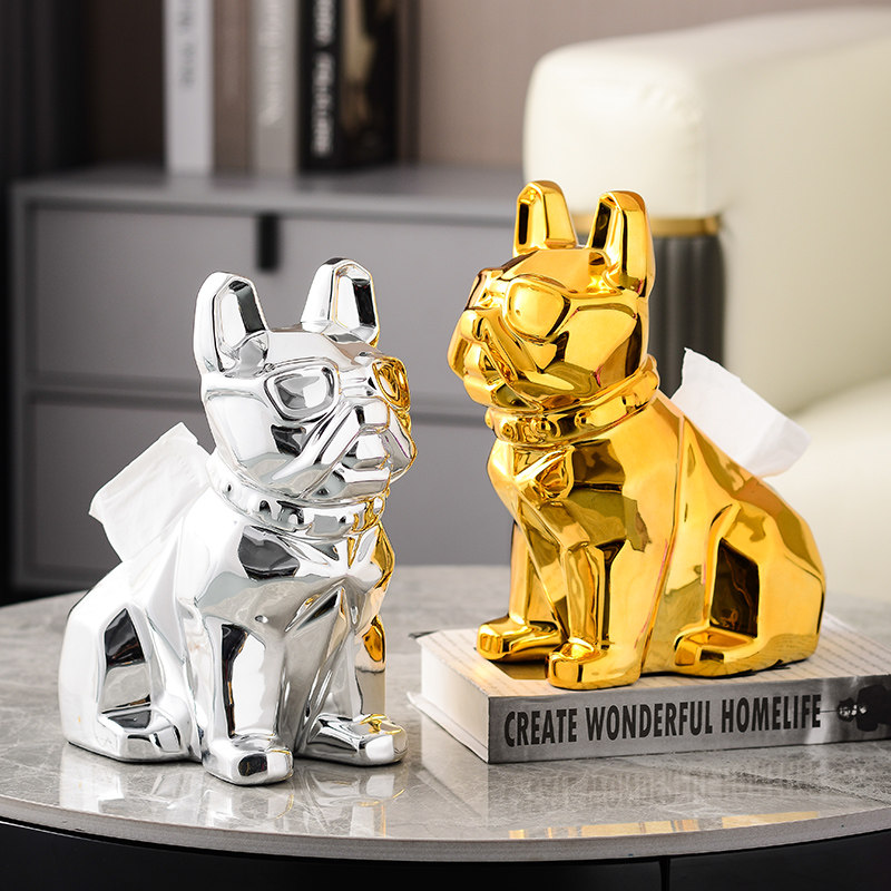 Silver French dog toilet paper box ornaments high-end tissue box light luxury living room high-end ceramic simple modern removable toilet paper
