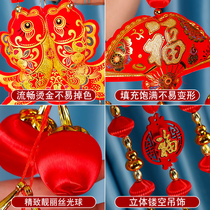 Spring Festival small lanterns hang up New Year's big red Fueword lanterns New Year's Day pendant Living room New Year's festive lanterns Festive Lanterns String Decorations