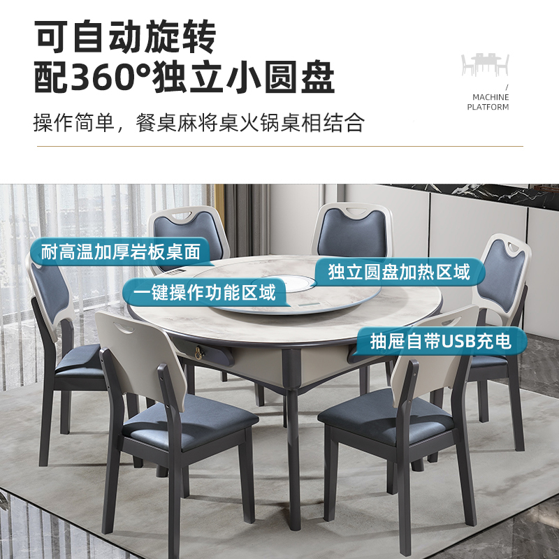 Minimalist modern hot pot induction cooker mahjong table dining table dual-use multifunctional dining integrated mahjong machine Home automatic