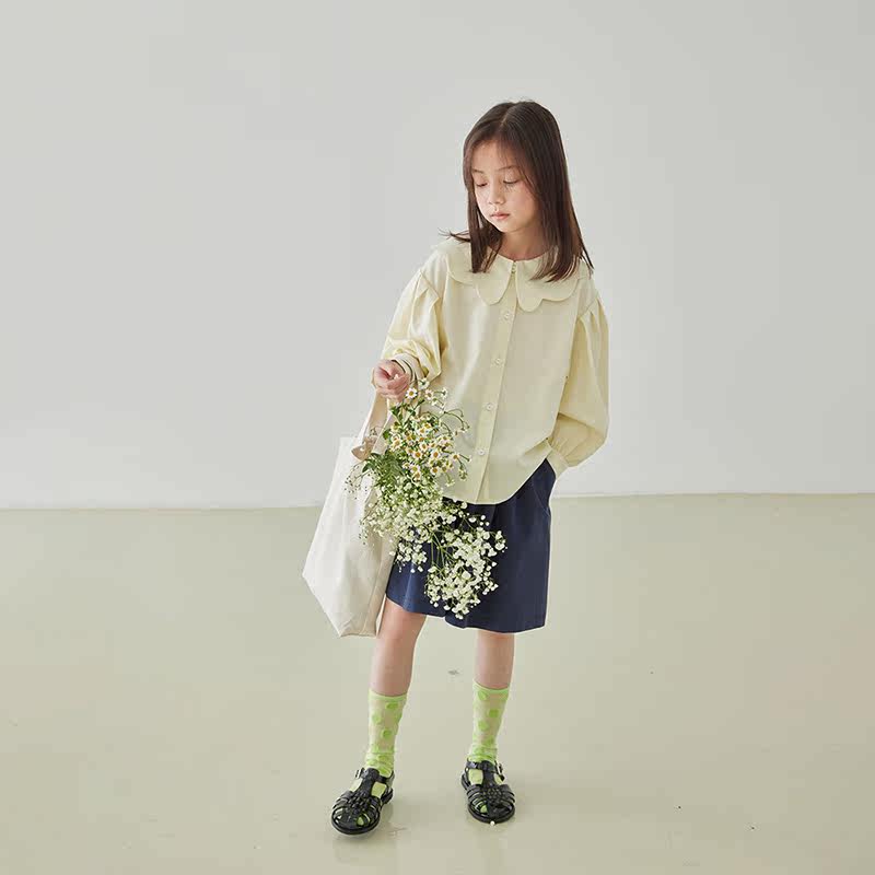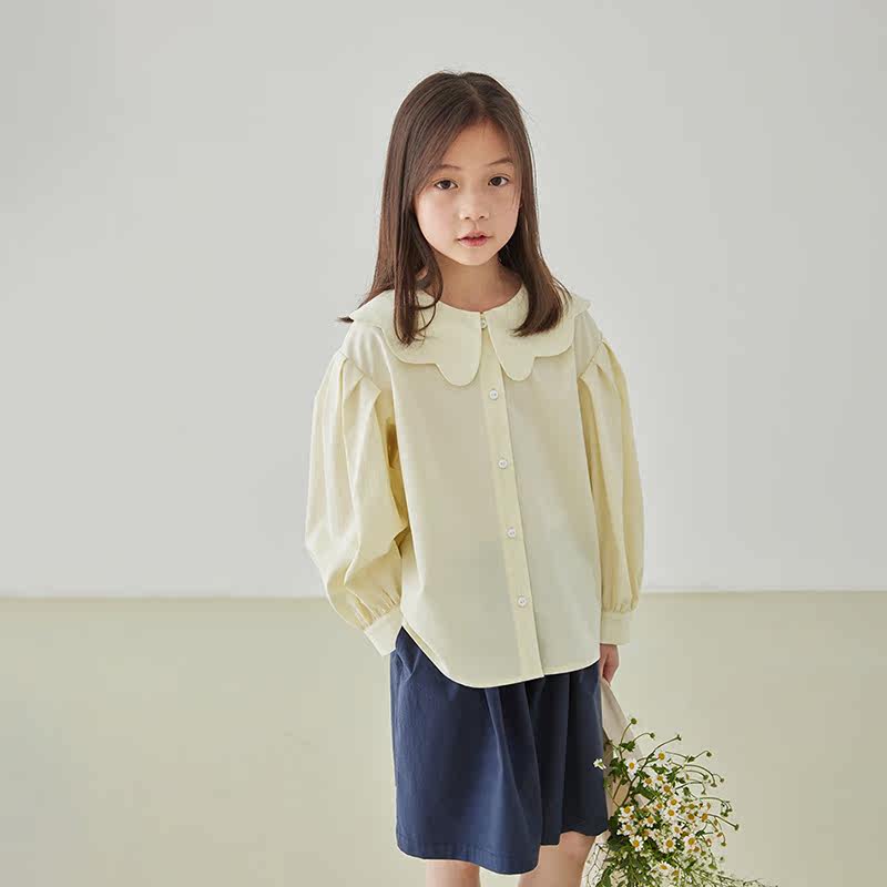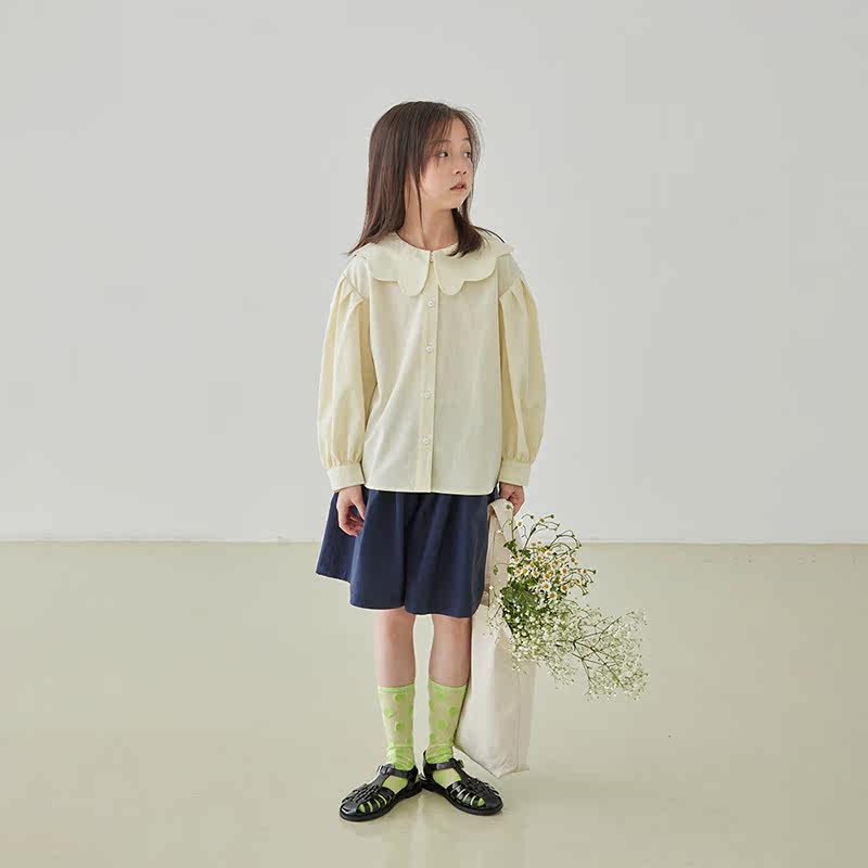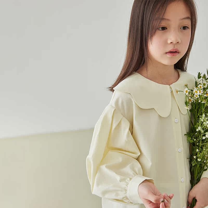 Early girl shirt 22 spring child petals lead long sleeve shirt tencel cotton undershirt foam sleeve blouse