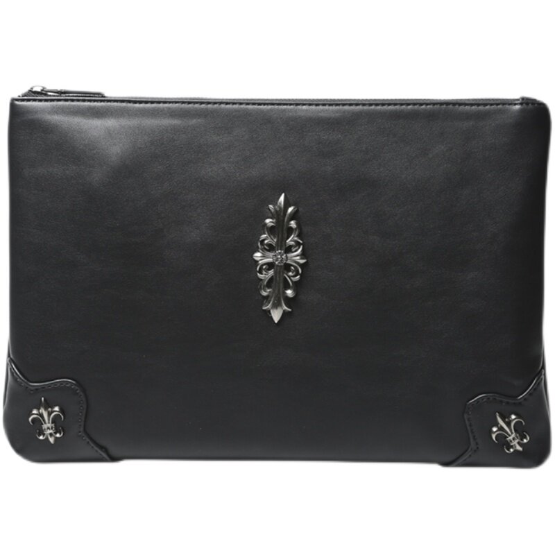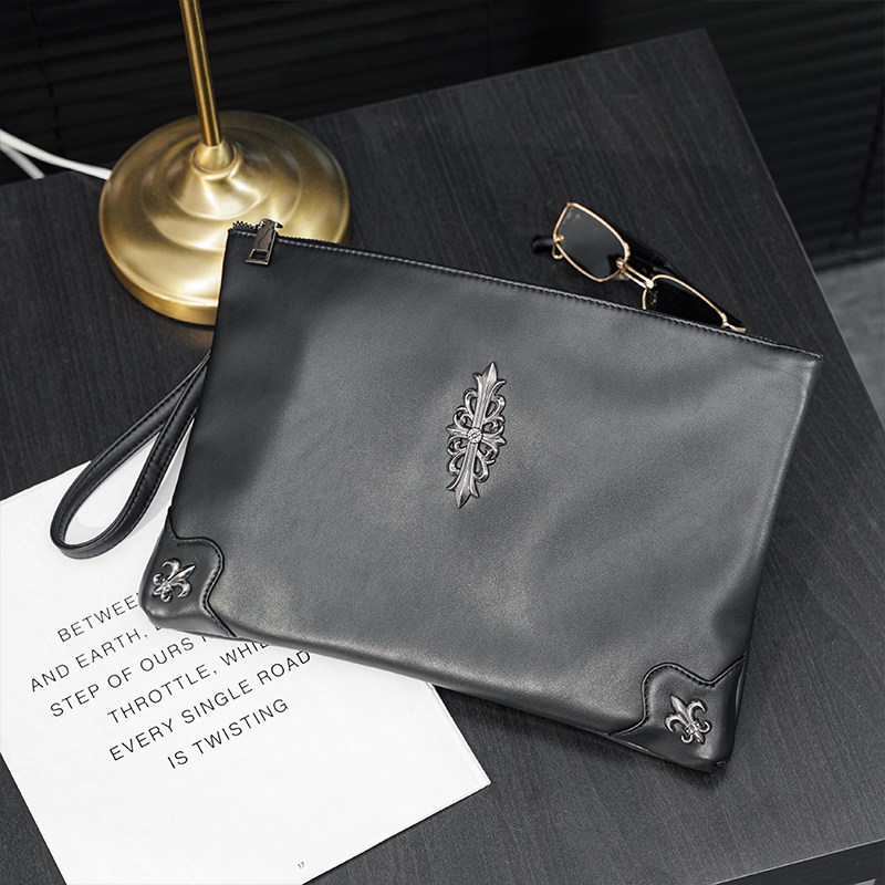 Hong Kong 2022 genuine leather men's hand holding pack trendy rivets wrist wrap casual single shoulder inclined satchel men and women handbags