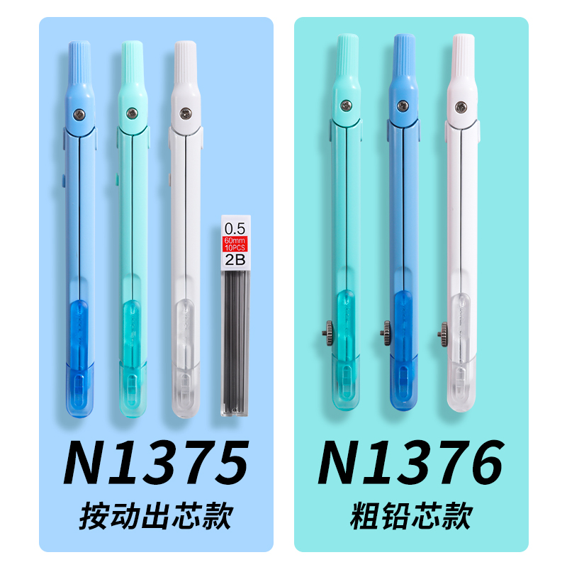 Morning light pen-style compasses students with practical maths geometric teaching exams with metal compasses primary high school students with replaceable refill drawing tool press-out core compasses stationery supplies