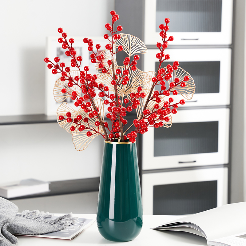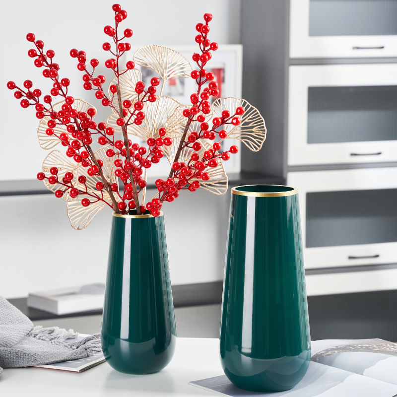 Net Red Glass Vase Green Grilled Porcelain Crafts Swing Accessories Large Guest Hall Flower Arrangement Red Fruit Table Surface Flower TV Cabinet Hem