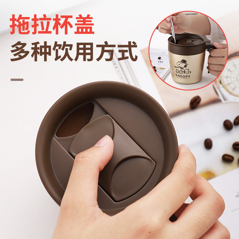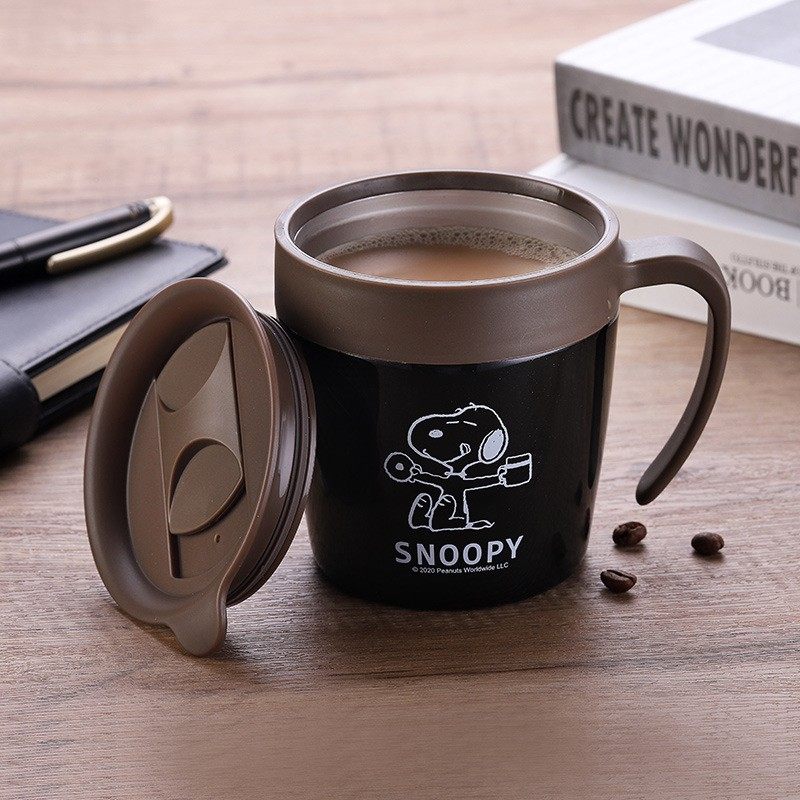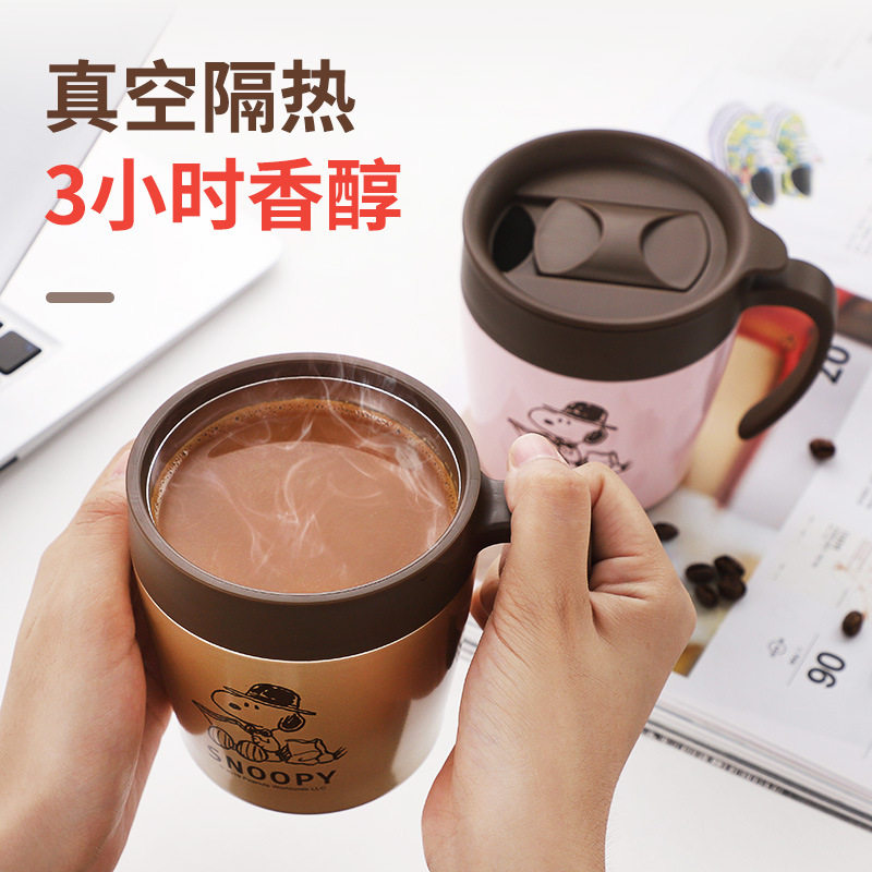 (Official) Snoopy Snoby with lid couple coffee cup stainless steel vacuum thermal insulation and anti-fall