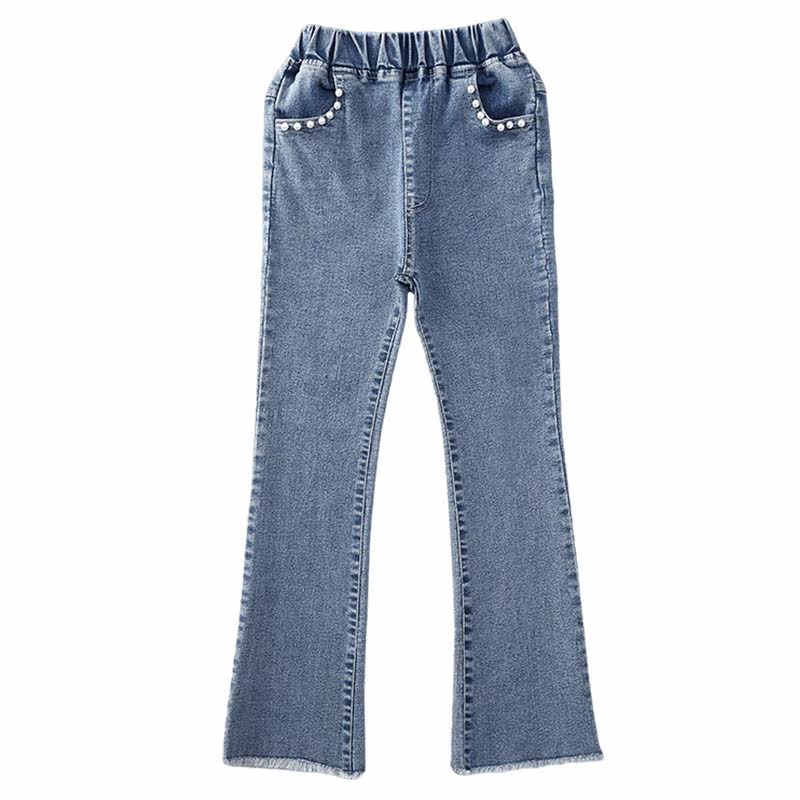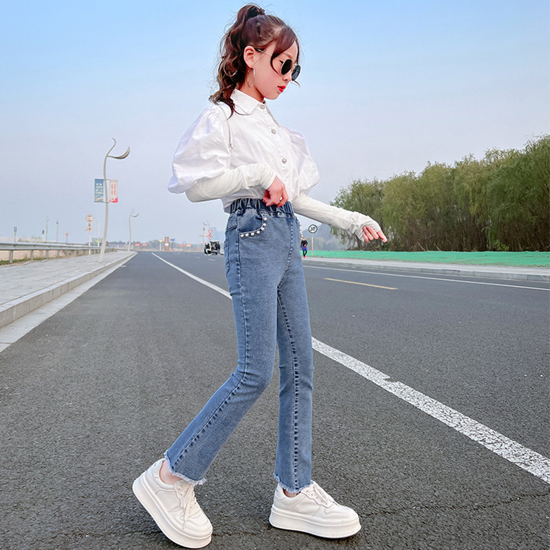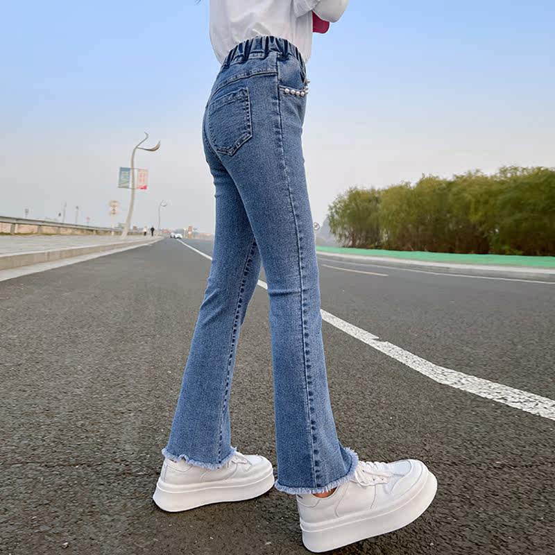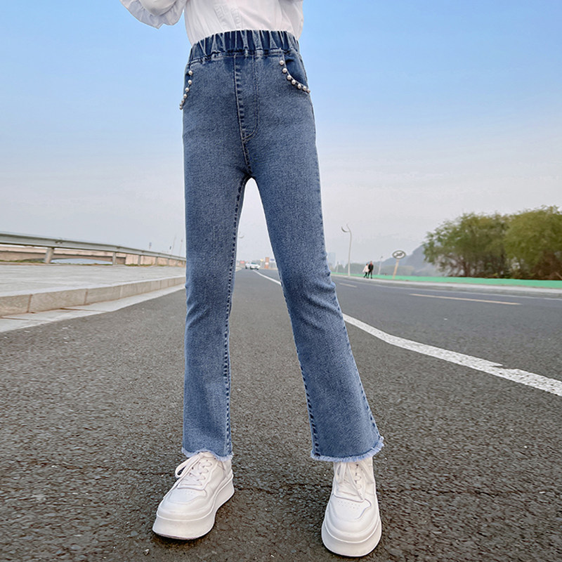 Girl Horn Jeans Spring Autumn New CUHK Tong Body Long Pants Spring Han Version Children Hair Side Casual Pants