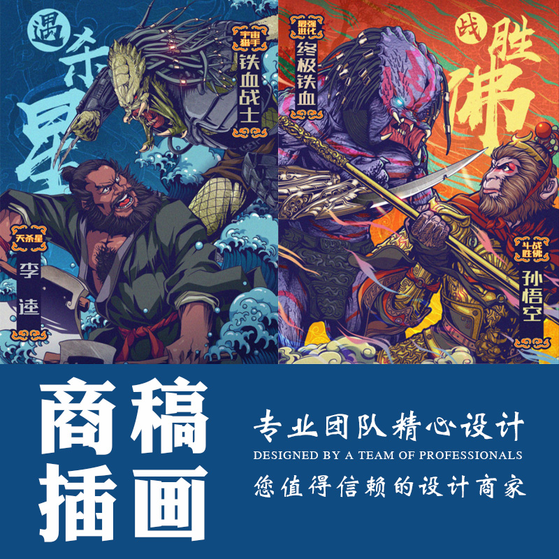 Hand-painted illustration design q-version cartoon national style character image animation cartoon painting business national tide picture book customization