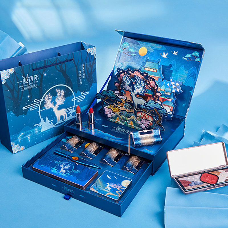 Concentric combined lock engraving flower lipstick red suit concentric lock relief eye-shadow disc suit sending gift bag Guochao Peking Opera Music festoons with gift bags