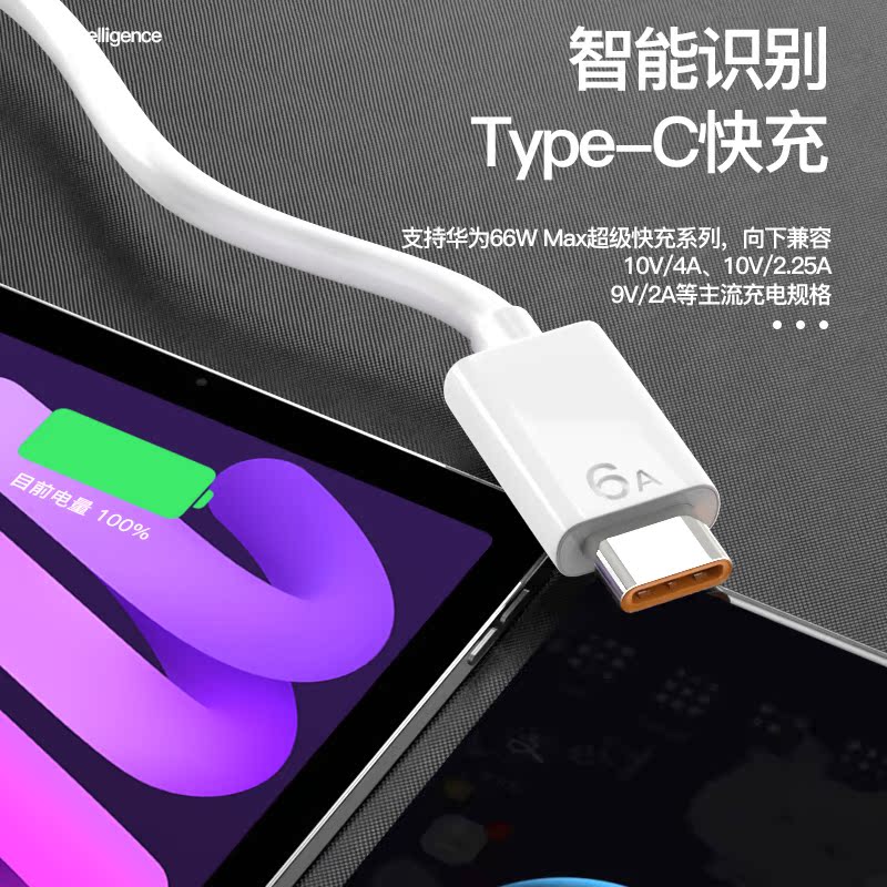 type-c data cable 6A is suitable for super fast charging tpyec Huawei flash charging p20p30p40mate glory 9nova7pro millet vivo phone ta