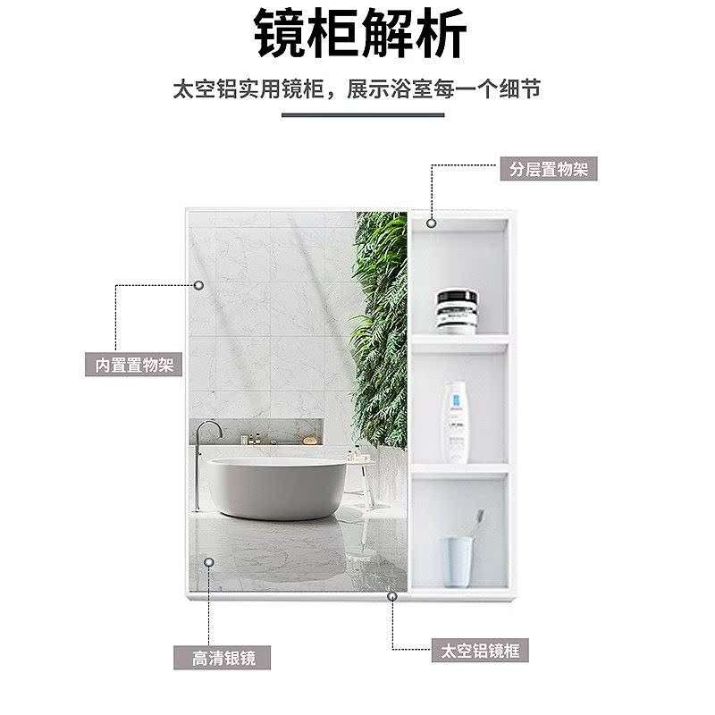 Nordic Style Wall-mounted Mirror Cabinet Individually Contained Box Space Aluminum Mirror Case Bath Cabinet Composition Makeup Dressing Room Storage Mirror