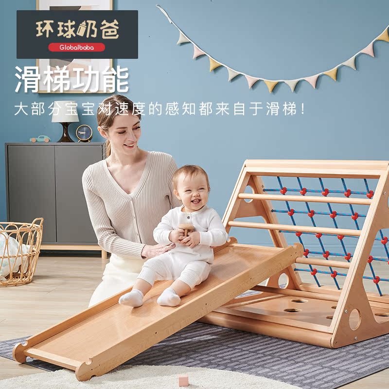 Global Dad Children's Slide Beech Climbing Frame Indoor Game Fitness Frame Small Baby Family Paradise