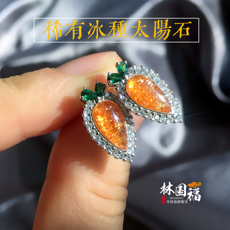 "Ice Yang" Collection Class Natural Ice Seed Sun Stone Ear Pin Pendant Lady Pendant Lady's Family Gift for Gift