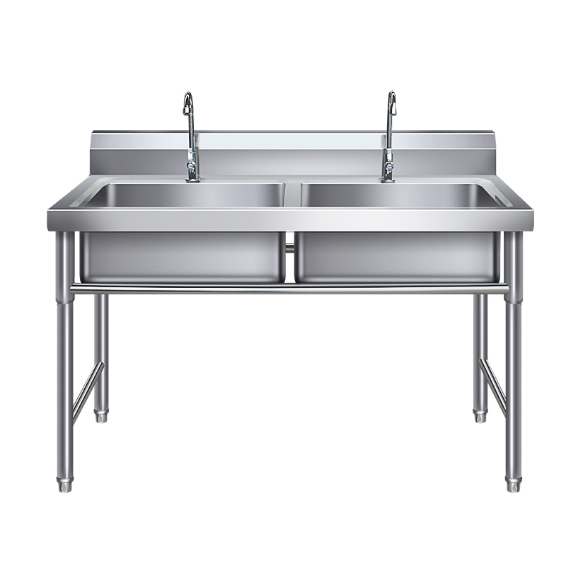 Commercial Stainless Steel Double Sink Shelf Adjustable Stainless Steel Wash Basin Oversized Basin Rectangular Sink Pool