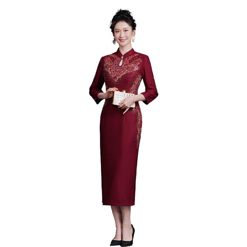 2022 new hot diamond embroidered elegant improved cheongsam long style happy mother-in-law and mother wedding banquet dress noble