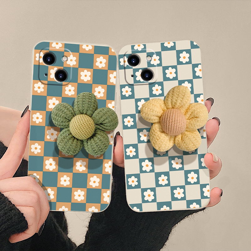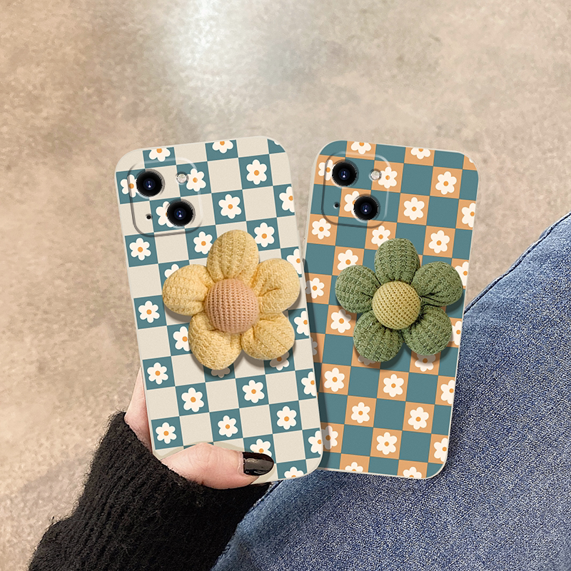 Apple Series Plaid Three-dimensional Flower Phone Case,iPhone13