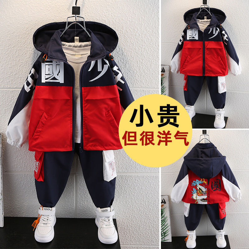 Boys spring sports suits 2022 new children's spring and autumn foreign style clothes baby handsome national tide two-piece tide
