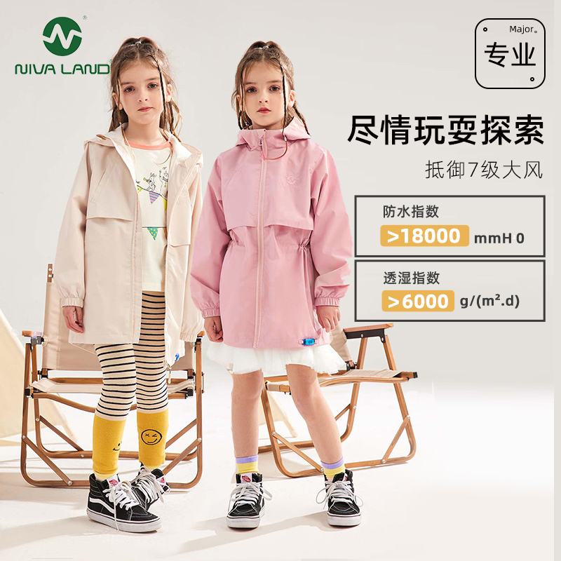 Nivelan children's long version windbreaker 2022 spring and autumn new windproof jacket thin section girl waist waist western style jacket