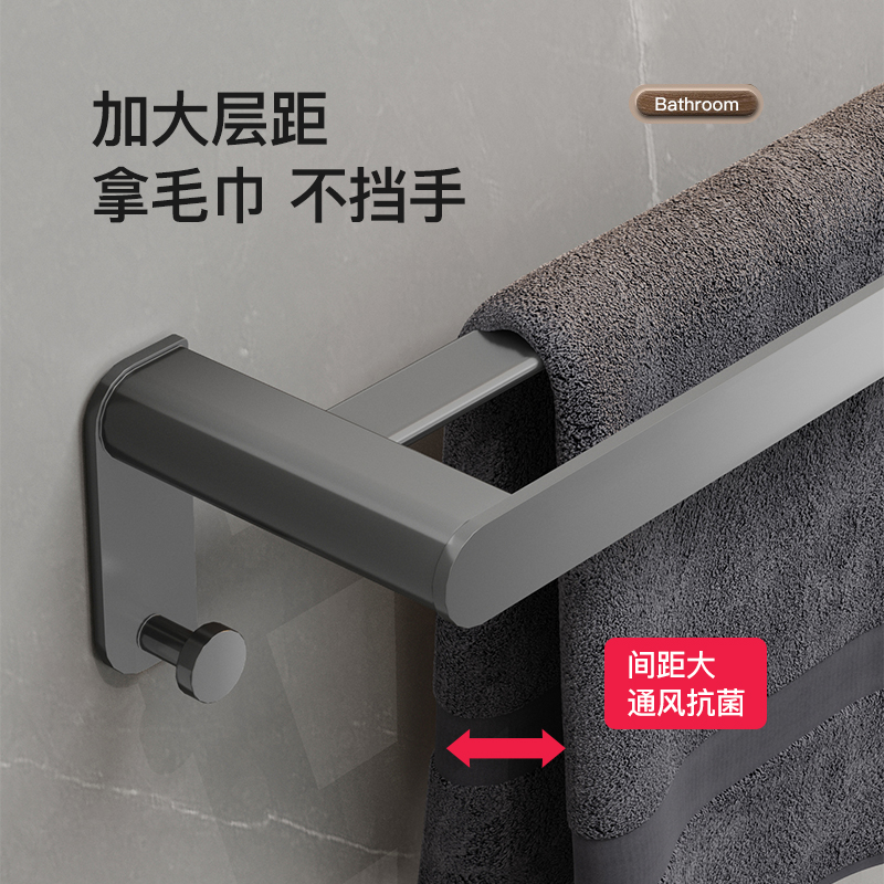 Gun Grey Bathroom Hair Towel Rack Free From Punching Light Lavish Makeup Room Rack Containing Clothes Wall-mounted Bath Towels