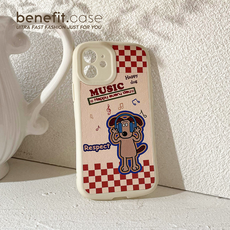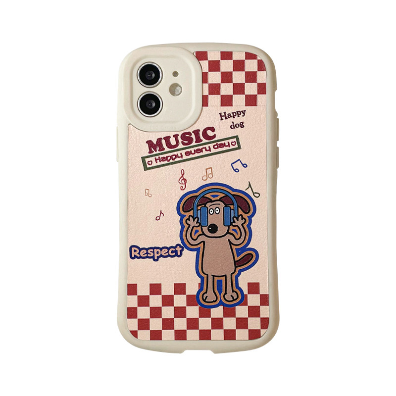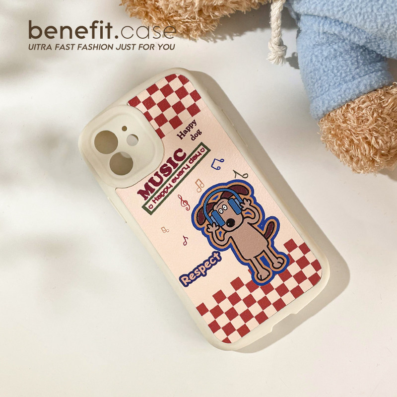 Benefit Japan-ROK cute music dog applies Apple 13promax mobile phone protection shell cartoon iphone12mini creative xsmax grain xr silicon