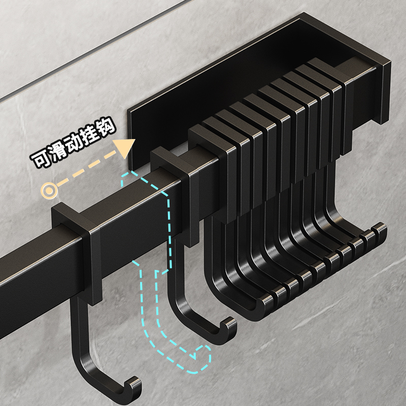 Free Punching Kitchen Hook Row Hanging Pole Wall-mounted Black Space Aluminum Cookware Hanging Spoon Shovel Rack Shelving Rack-Taobao