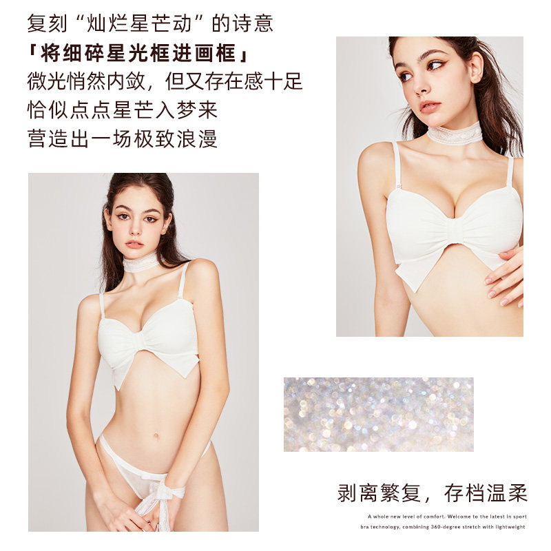 Curious Honey no steel ring underwear Female small chest pure desire cute French butterfly knot bra hood suit thin anti-sagging-Taobao