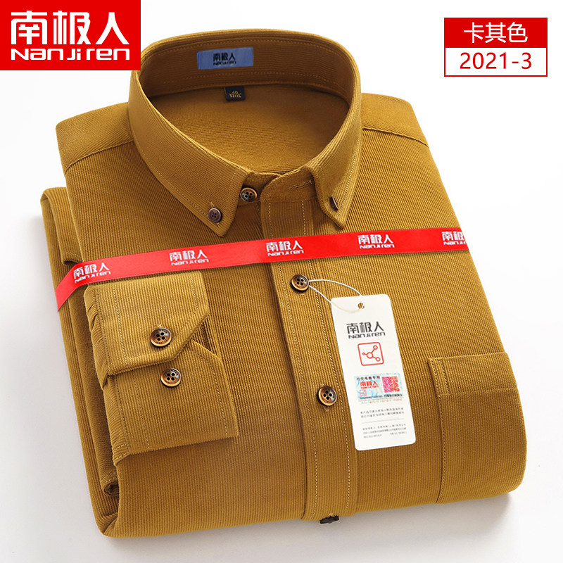 Nanjiren corduroy long-sleeved shirt men's dark green business casual dad's shirt men's solid color anti-wrinkle inch fir