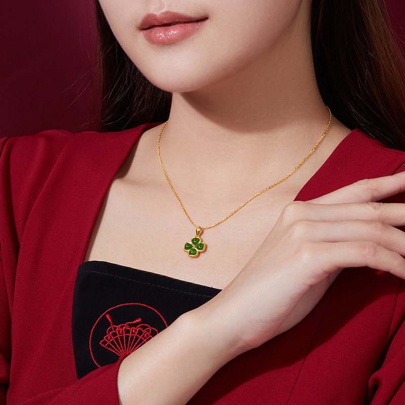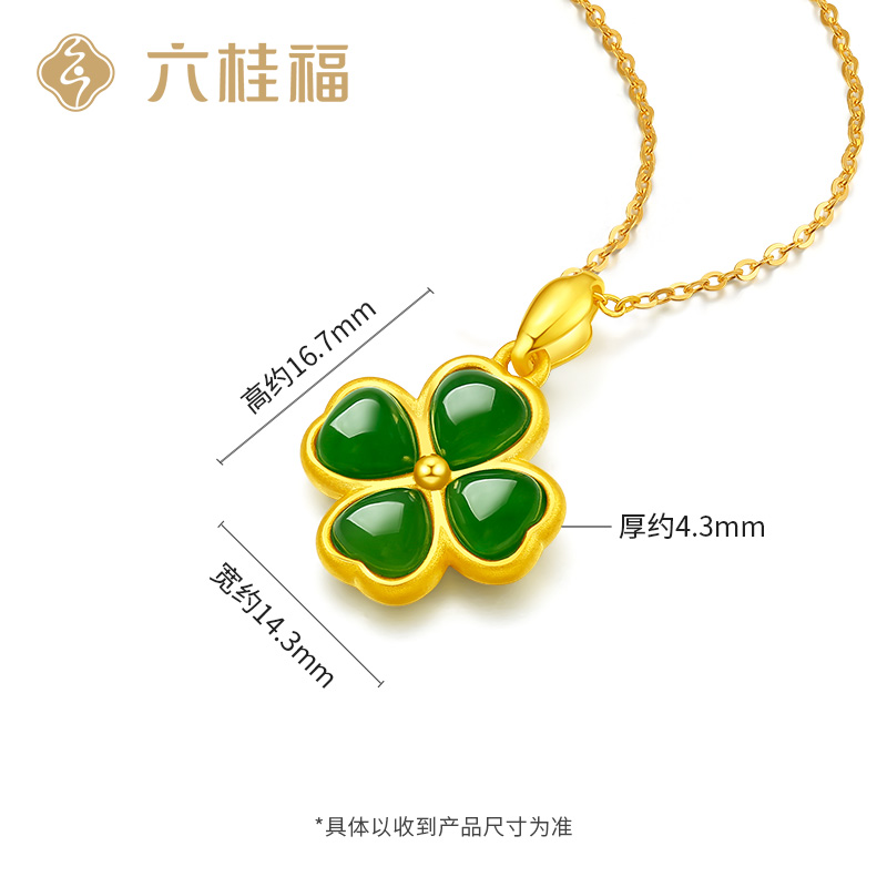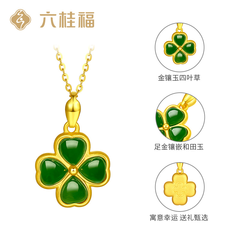 Liuguifu jewelry gold inlaid jade four-leaf clover pendant female gold Hetian jade jasper necklace clavicle chain foot gold pendant