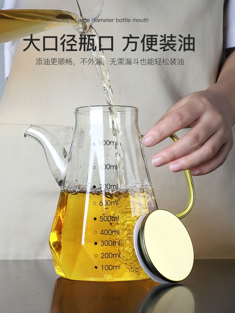 bincoo glass oil pot kitchen household oil pot pot seasoning bottle large-capacity oil storage not hanging oil leak-proof small oil bottle