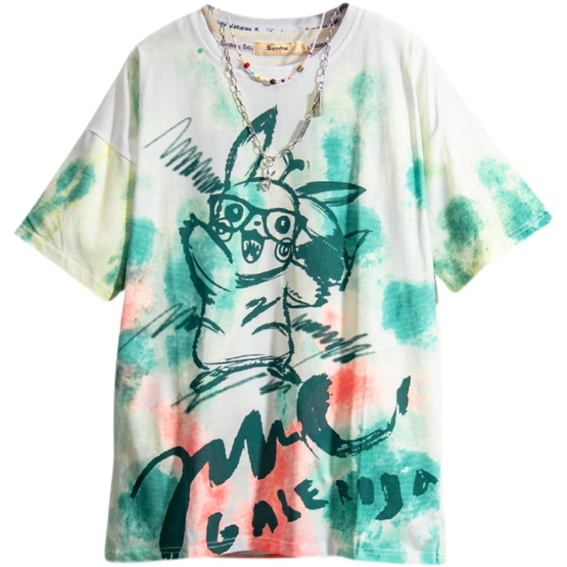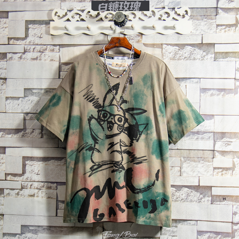 BTMG White Sugar Rose 22 cartoon graffiti pattern short sleeve T shirt men summer relaxed body shirt and breathable tops
