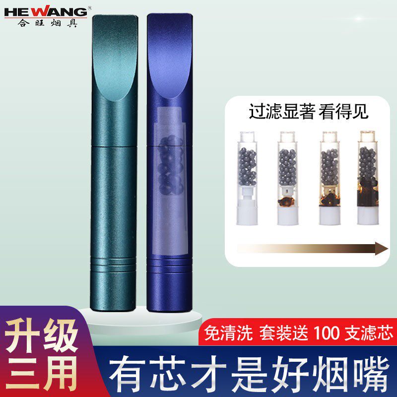 New Hewan cigarette holder coarse and fine smoke three use cigarette holder filter male and female disposable filter core metal cigarette holder male gift