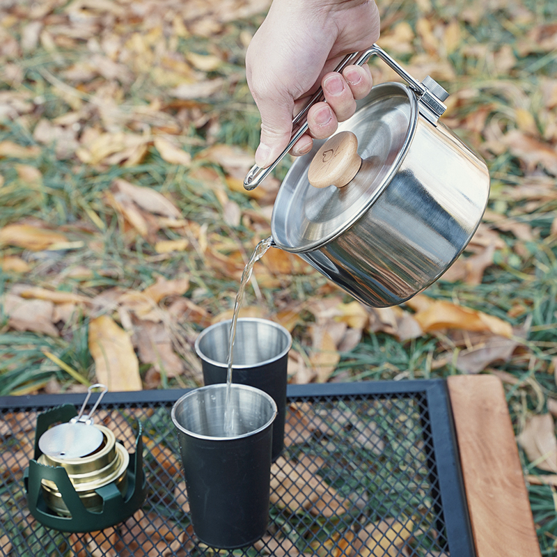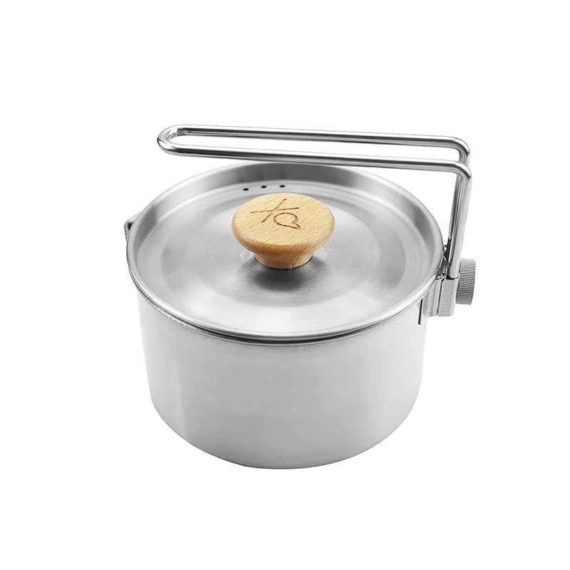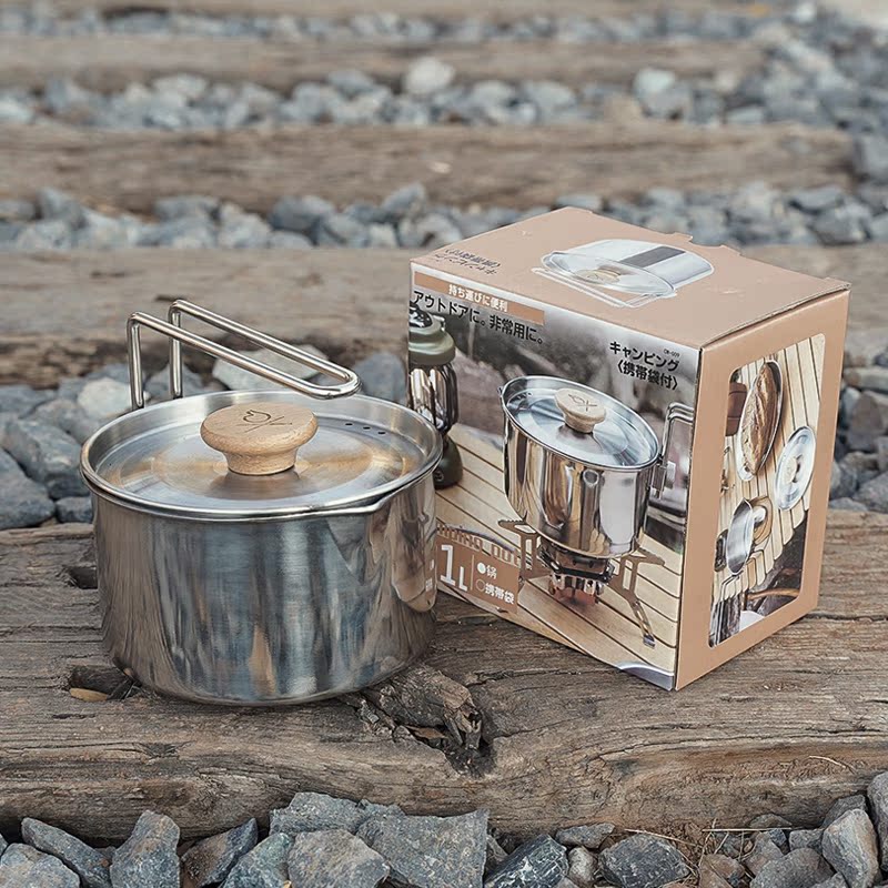 Outdoor 304 stainless steel 1L kettle mountaineering camping bento pot household instant noodle pot field foldable lunch box