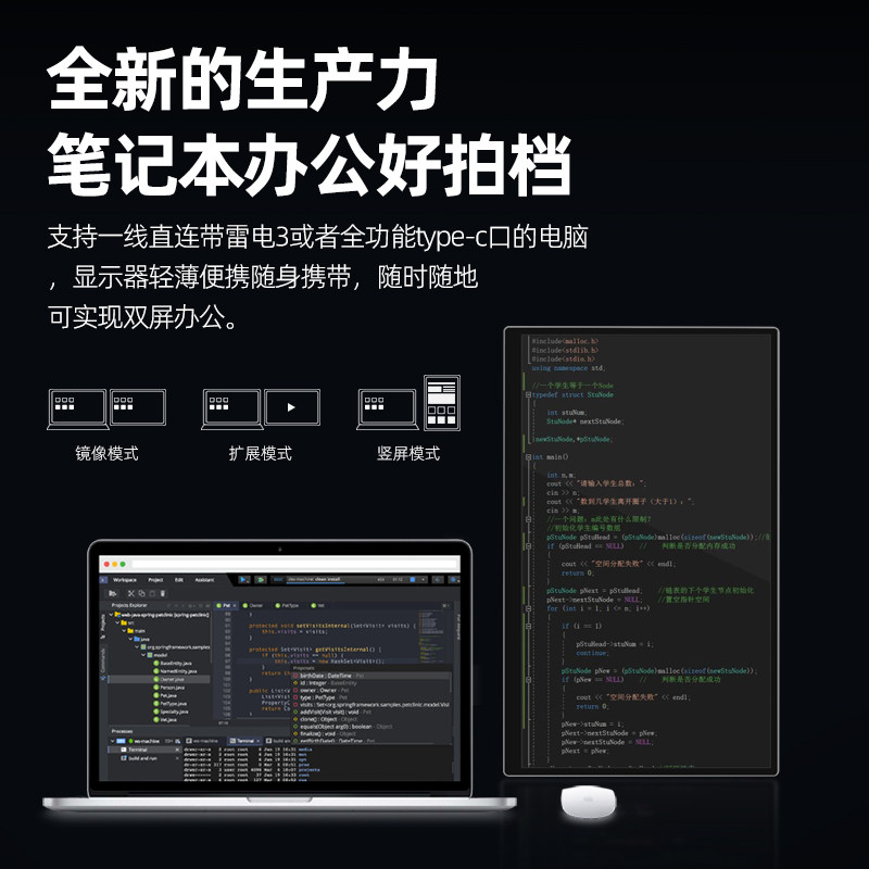 EIMIO built-in battery portable monitor 14 inch for macbook laptop secondary screen ps