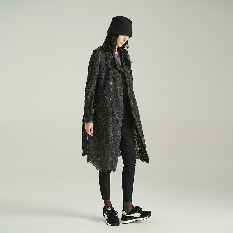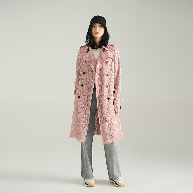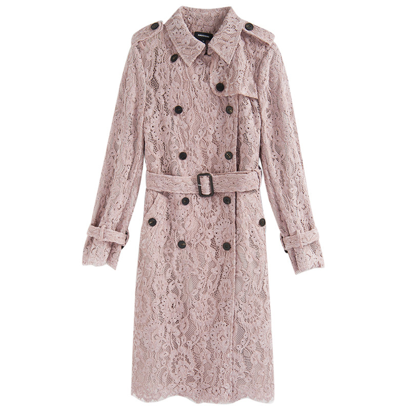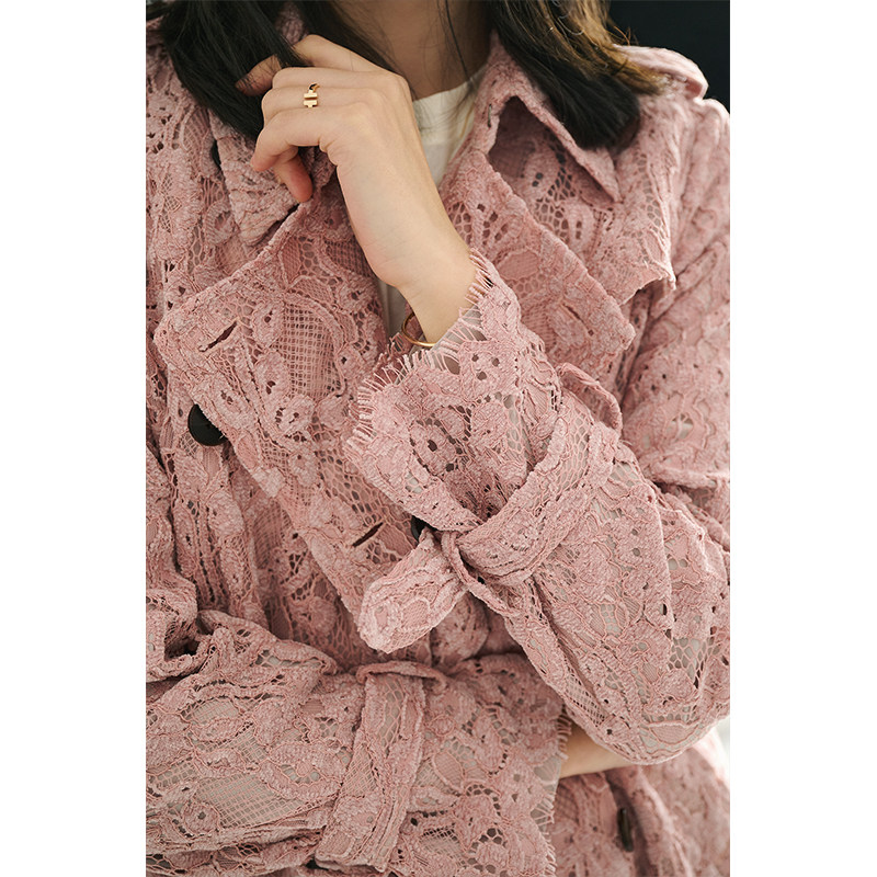 Small worm day * This imported silk suede lace series with long version of wind coat jacket detachable belt Eugen yarn inner lining