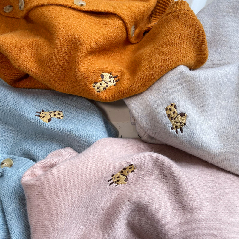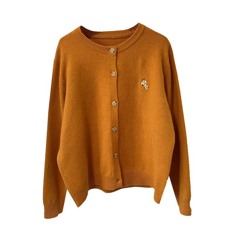 Small deer embroidery round collar knit cardio-hoodie woman early spring new Korean version laminated wearing loose single row of buckle 100 lap sweaters jacket
