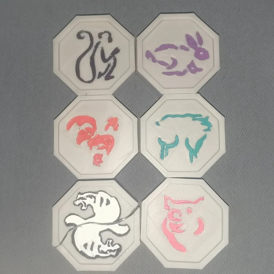 One random (PLA material 4x4x1cm) a set of spells (PLA material 4x4x1cm) a set of spells (PLA material 5x5x1cm)