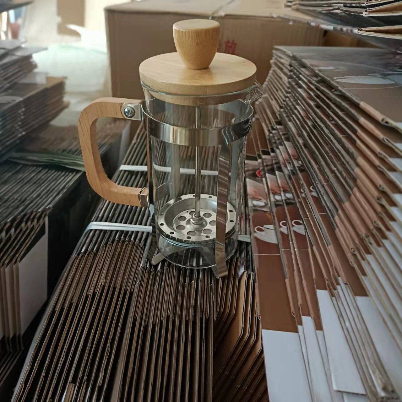 Coffee hand-made pot household brewed coffee filter appliance cup tea maker stainless steel glass French filter press pot bamboo wood cover