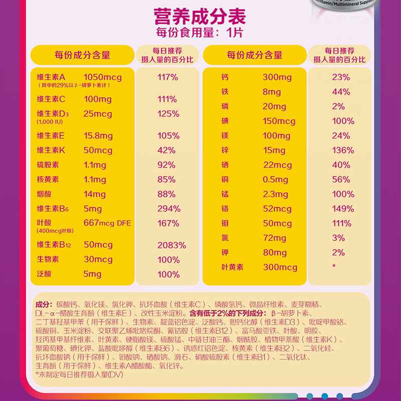 American Shancun silver tablets middle-aged and elderly women's multivitamin 200 tablets multi-vitamin B group vc50 years old or older