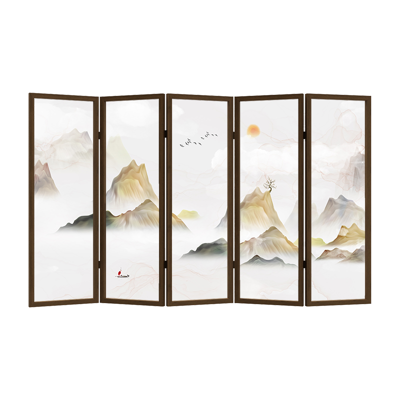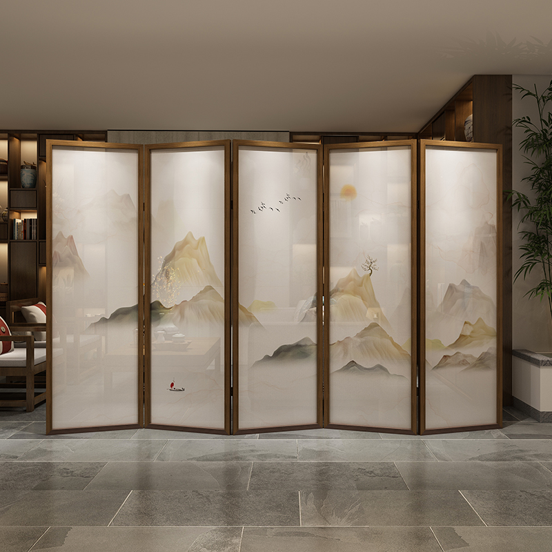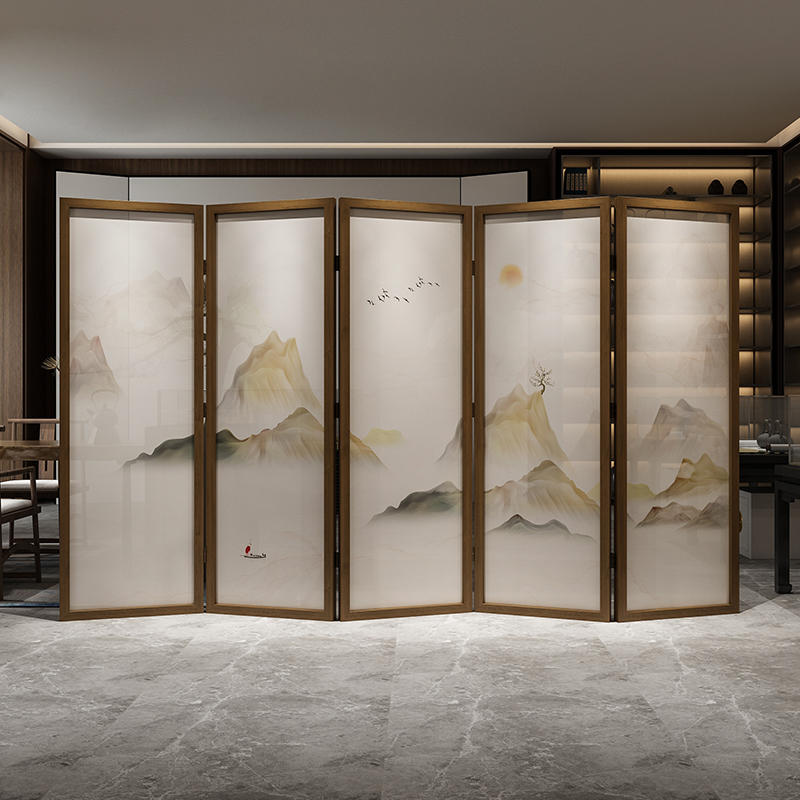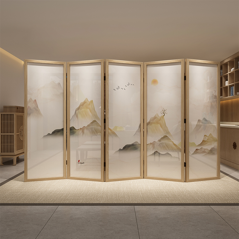 New Chinese Office Tea Room Landscape Genguan Entrance Decoration Folding Screen Living Room Folding Wall Mobile Solid Wood Shelter Folding Screen