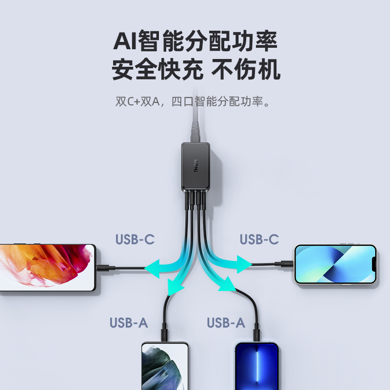 Aohi ohai 65W gallium nitride desktop charger GaN charging head platoon plug in USB plug Multiple lipstick apply Apple 13promax phone pd quick to charge iPhone12 notes