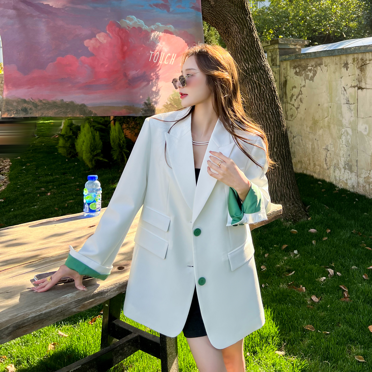 Advanced Sensation Fried Street Green Suit Jacket Woman Spring Autumn 2022 New Korean Version Loose Casual Internet Red Little West Suit