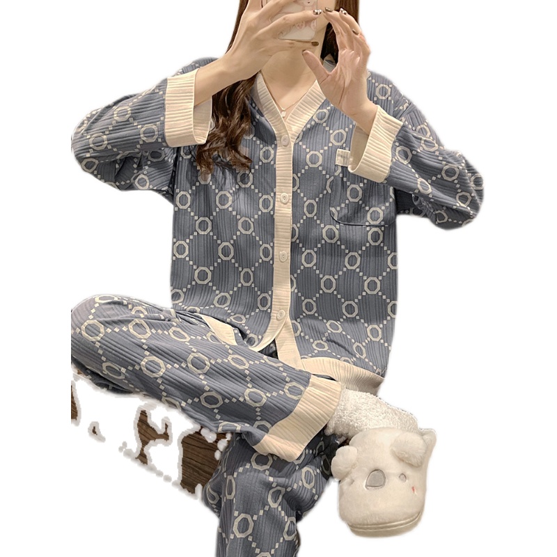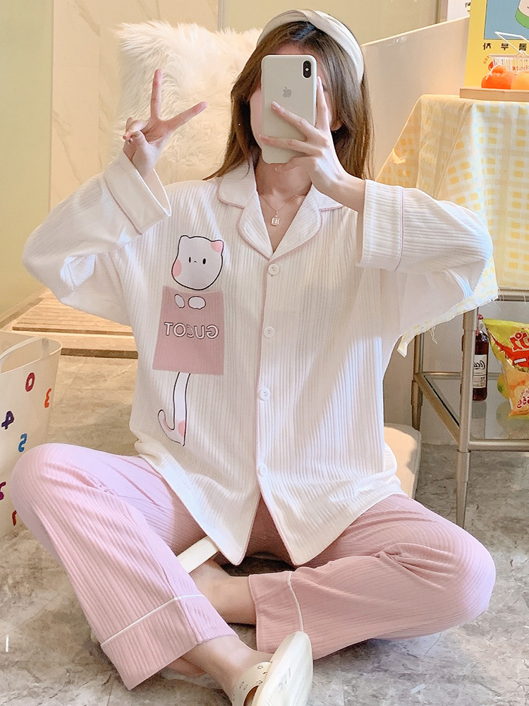 Sleepwear Lady Spring Autumn Season Thin pure cotton long sleeves 2022 New cardigan Senior sensation Net Red can be worn outside the home clothes